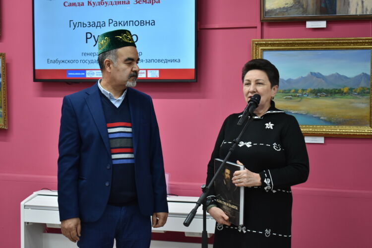 О представленных работах рассказал их автор — Саид Земар. Гульзада Руденко вручила мастеру кисти памятные подарки — книги и фирменные елабужские сувениры. В свою очередь худодник подарил музею-заповеднику одну из своих работ. Вечер музыкальными композициями украсил Талгат Зарипов.