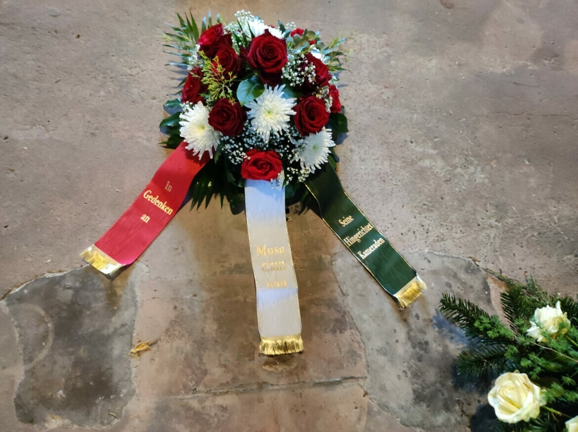 Как стало известно «Татар-информу», цветы в память Мусы Джалиля возлагают здесь второй год подряд. Венки украшены лентами в цветах государственного флага Татарстана. Подпись гласит: «Памяти Мусы Джалиля и его товарищей».