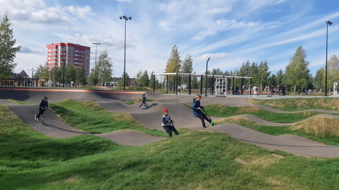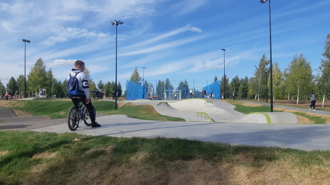 Далее гости осмотрели экстрим-парк и приняли участие в активностях на баскетбольной и футбольной площадках. Экстрим-парк города Лаишево оборудован детским и взрослым памп-треками, скейтпарком, велосипедными и прогулочными дорожками, территорией для игр в волейбол и стритбол, детской, а также многофункциональной площадкой, зоной для воркаута, амфитеатром и площадью с навесом. В общей сложности в рамках строительства общественного пространства было освоено 116 млн рублей из федерального и республиканского бюджетов.