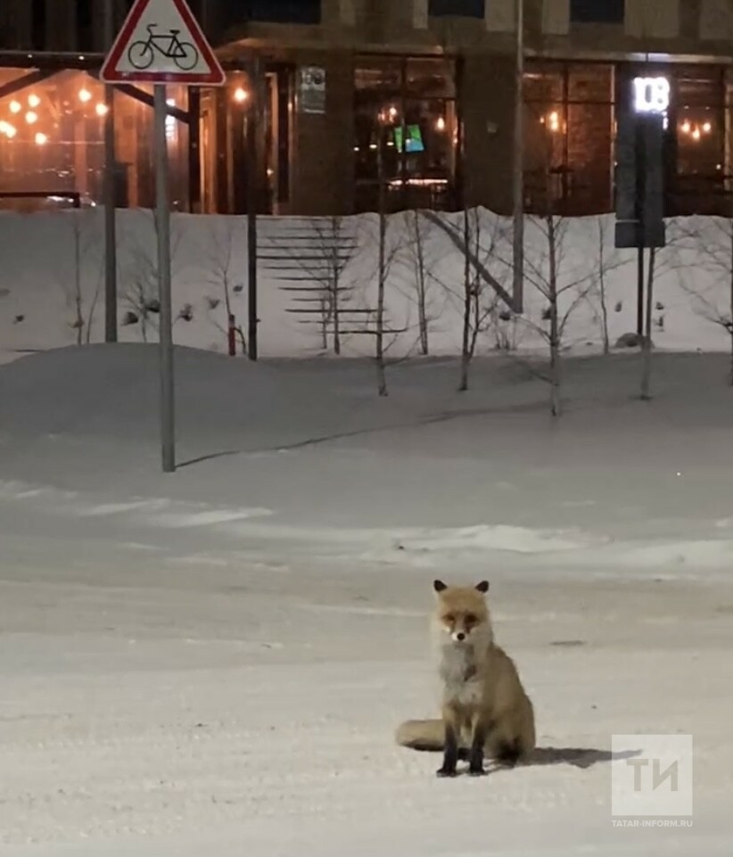 Лисицу, сидящую около одного из домов Иннополиса, удалось снять на видео очевидцам. Запись появилась на страницах в соцсетях.