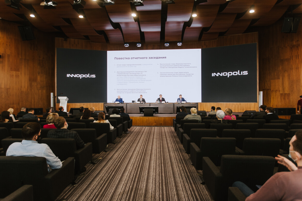 В своем выступлении глава перечислил главные события 2021 года, к которым он отнес начало строительства жилого комплекса Ю-1 более чем на 8,5 тыс. новых жителей, завершение монолитных работ на стройке двух новых технопарков Б-2 и Б-3, создание Совета депутатов и запуск реализации проекта по открытию филиала Детской школы искусств в Иннополисе.