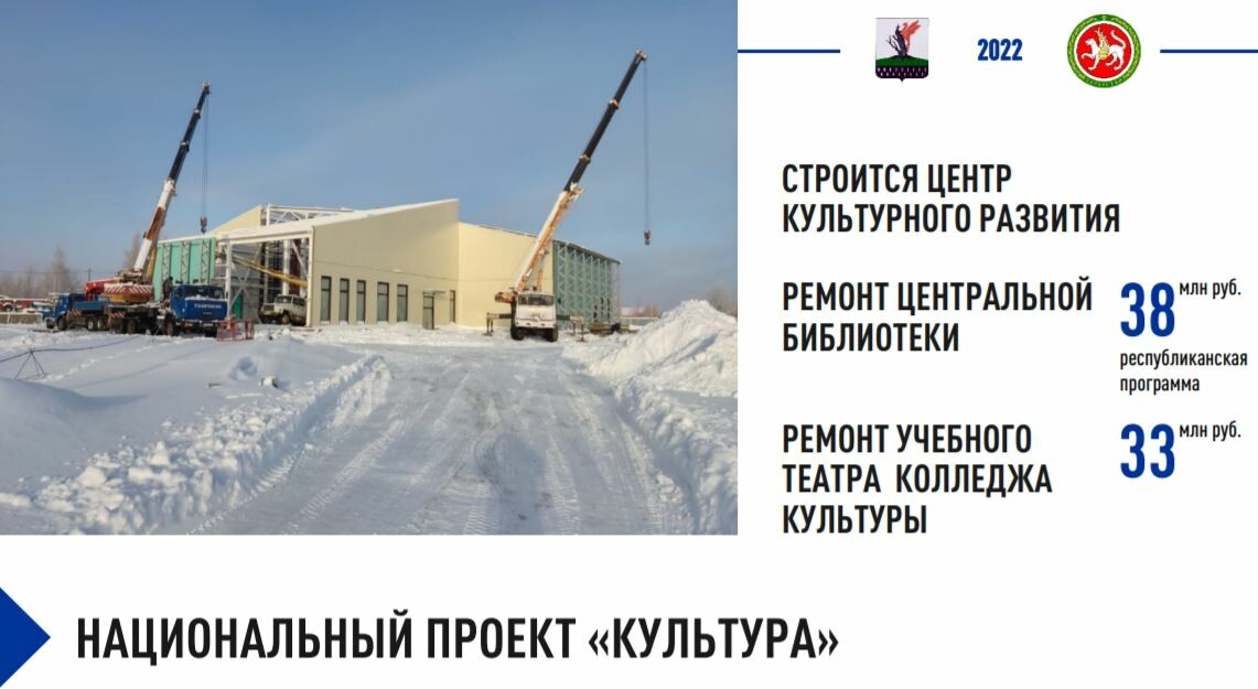 Спикер уточнил, что здания центральной библиотеки будет обновлено по республиканской программе на сумму 38 млн рублей, на ремонт Учебного театра колледжа культуры и искусств из средств гранта ПАО «Татнефть» направлено 33 млн рублей.