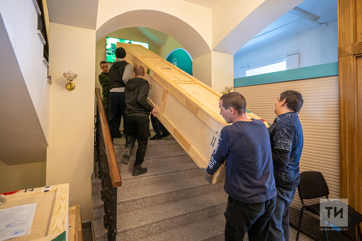 «Самые тяжелые ящики в этой перевозке — килограммов 200, в среднем около сотни. Условия перевозки очень жесткие: под охраной, климат-контроль 14–16 градусов внутри грузовика, плюс двойной контроль температуры, в том числе дополнительный автономный отопитель на случай, если что-то выйдет из строя. К тому же машина должна быть оснащена обязательно пневмоподвеской, которая независимо от качества покрытия дорог и резонанса колес сохраняет один уровень для перевозимых предметов — исключает колебания пола», — рассказал ИА «Татар-информ» экспедитор компании — перевозчика предметов искусства Андрей Огурцов.