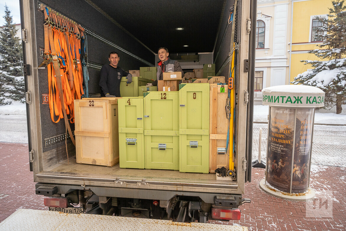 «Мы выехали в понедельник в 11 утра из дверей непосредственно Эрмитажа, в Казань прибыли вчера в половине седьмого. Моя задача — проследить, чтобы все 32 ящика по списку погрузили в Эрмитаже, а затем — чтобы все 32 выгрузили по месту прибытия. После того, как выгрузим эту выставку и заберем предыдущую, „Пять символов счастья“, грузовик сразу отправится обратно в Санкт-Петербург, завтра вечером он уже должен быть в Эрмитаже», — пояснила специалист.