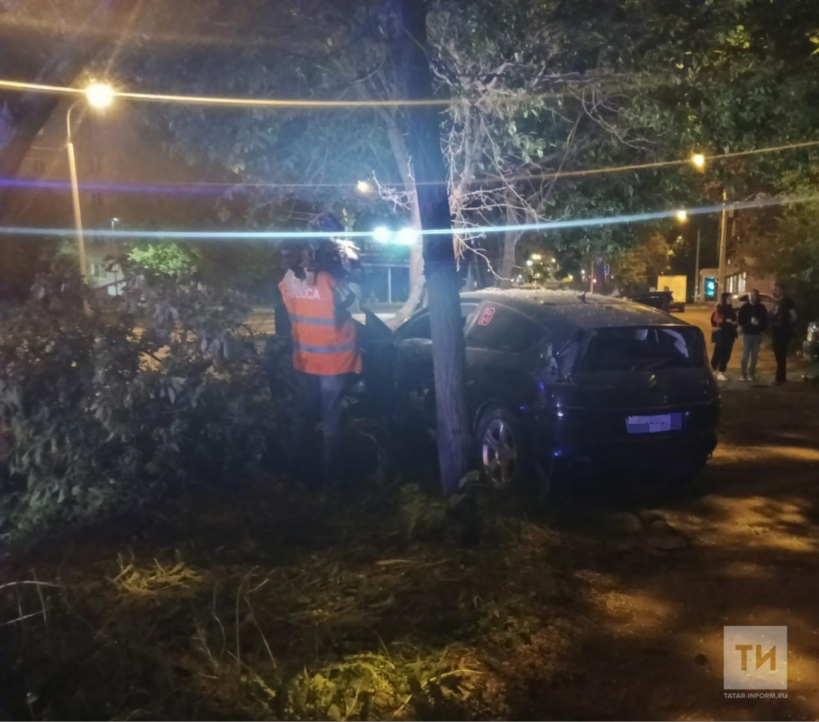В Казани иномарка влетела в дерево, есть пострадавшие