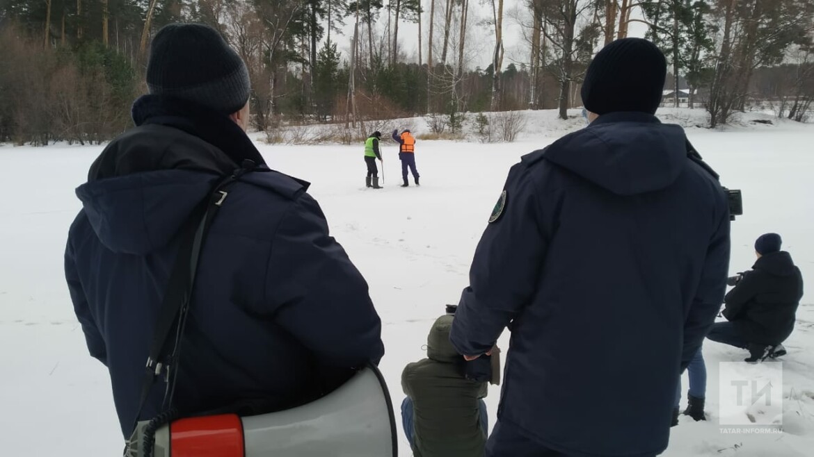 Во время рейда на озере Лебяжье в Казани инспекторы ГИМС поймали двух человек, которые несмотря на все запреты, вышли рыбачить на тонкий лед.
