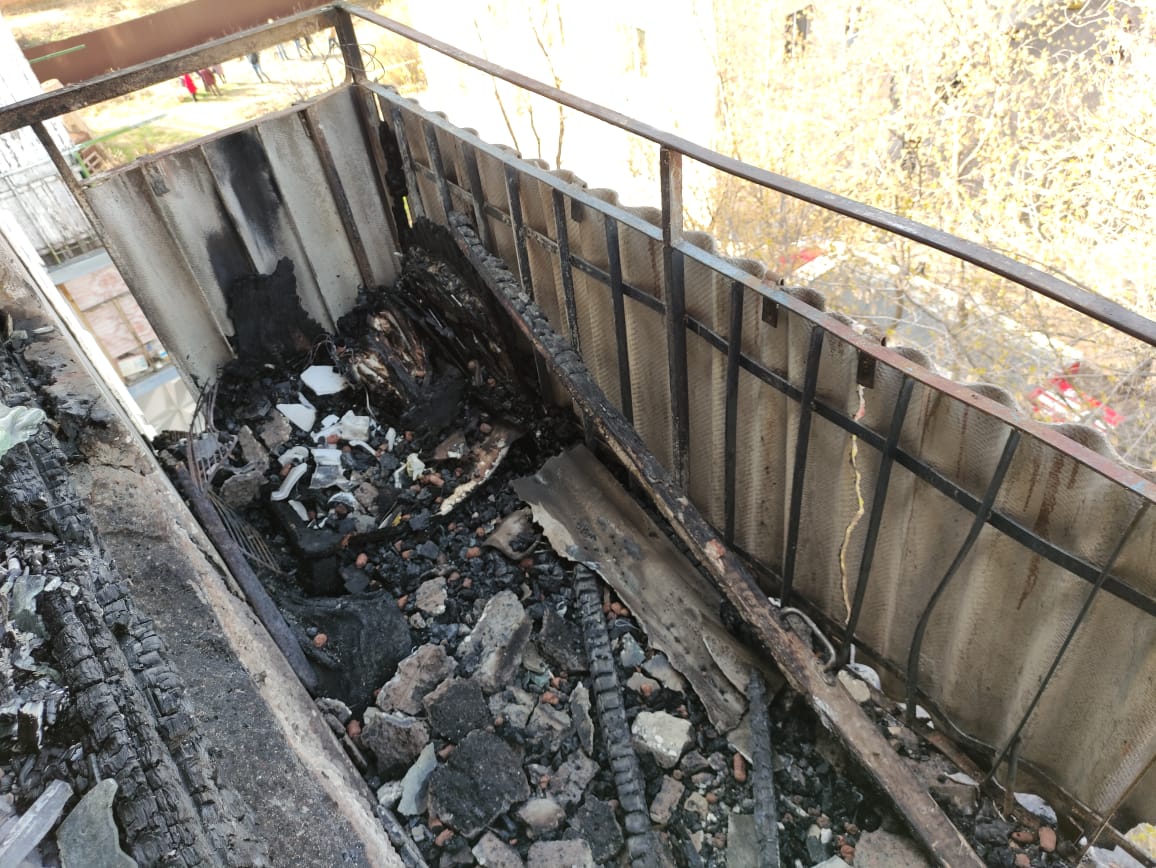 Сегодня утром поступило сообщение, что доме №118 по улице 2-й Военный городок горит квартира и балкон.