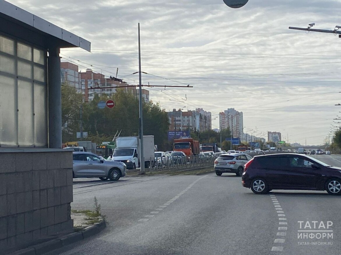 В Казани на улице Ямашева образовалась огромная пробка в результате аварии.