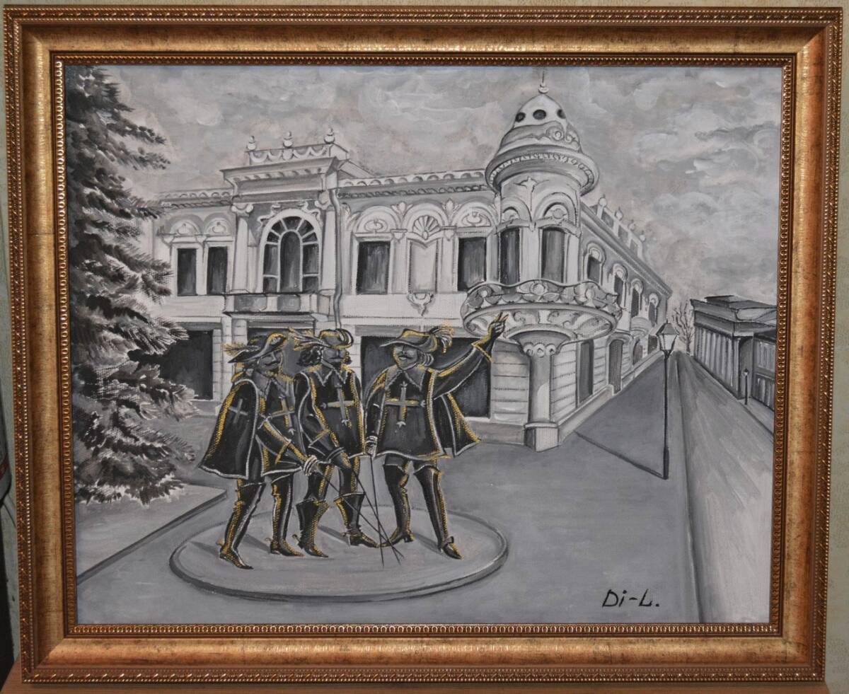 Дина Лебедева «Проект памятника А .Дюма в Казани. Три мушкетёра.» Холст, акрил , 50х60 см.