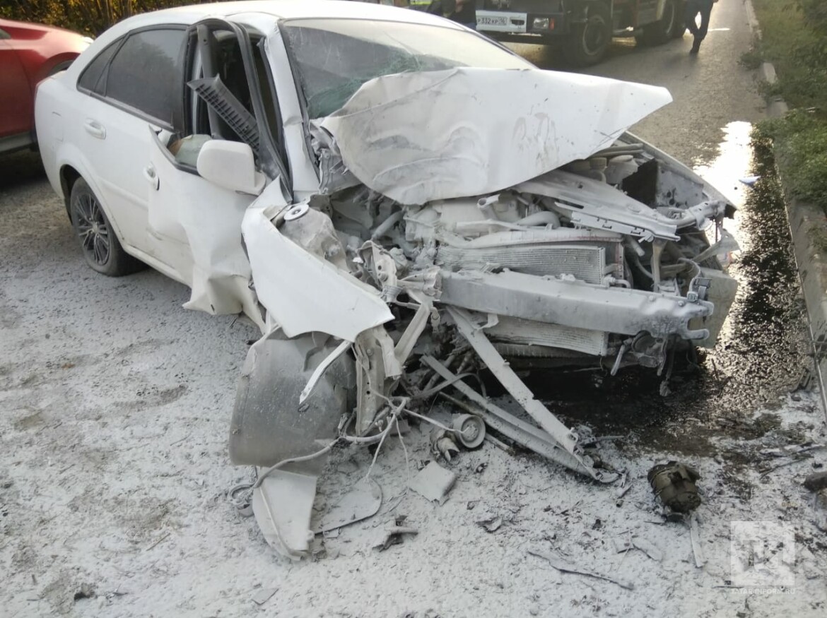 От сильного удара у автомобиля полностью смяло переднюю часть кузова. Как сообщили ИА «Татар-информ» очевидцы случившегося, сам водитель не пострадал.
