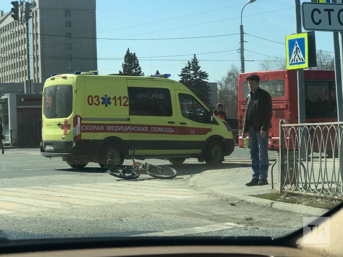 Очевидцы прислали в редакцию «Татар-информа» фотографии, на которых скорая помощь стоит рядом с упавшим велосипедом на улице Декабристов в Казани. По предварительной информации, велосипедиста могли сбить.