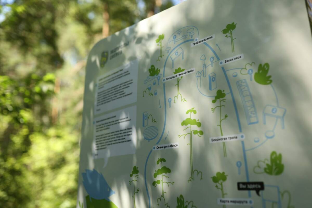 Маршрут состоит из следующих этапов: «Босоногая тропа», «Звуки леса», «Грибная поляна», «Площадка тихого отдыха» и «Смени угол обзора».