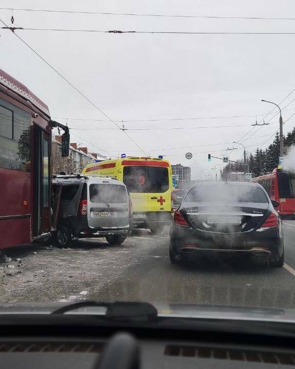 В Казани на Гвардейской столкнулись трамвай и легковушка