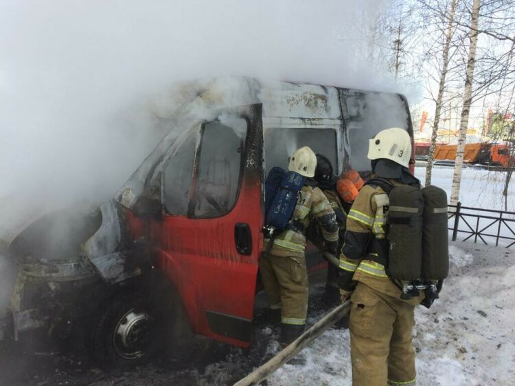 В скором времени пожарные потушили огонь, никто не пострадал. В результате пожара микроавтобус полностью сгорел.
