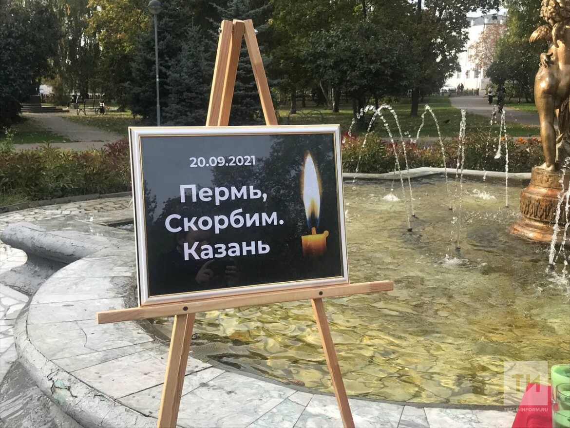 В Казани у фонтана в Ленинском саду организовали мемориал в память о погибших при стрельбе в Пермском университете.