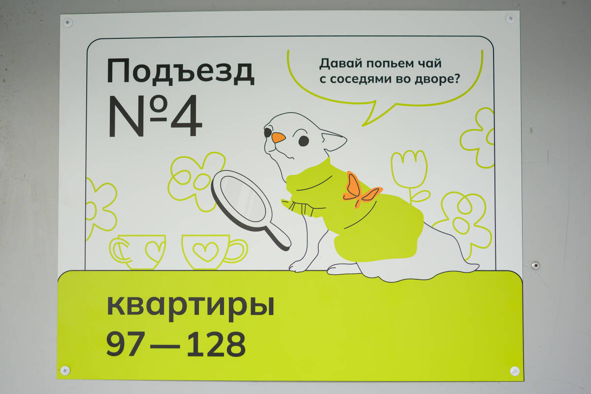 Кроме того, управляющая компания «Савиново» и команда проекта установили у входов в подъезды таблички с добрыми пожеланиями от имени питомцев. Они напоминают жителям о дружелюбии и взаимном уважении.
