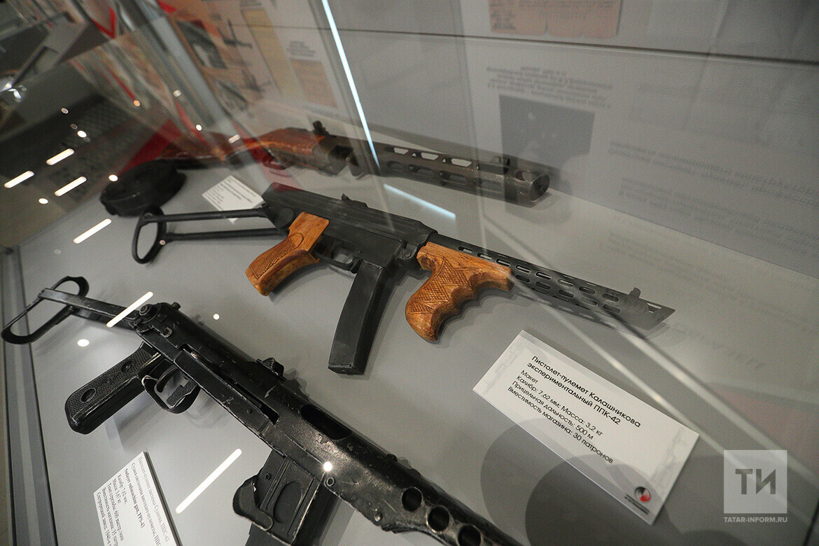 В Присутственных местах музея-заповедника «Казанский Кремль» открылась выставка «Калашников. Солдат. Конструктор. Легенда». Экспонаты, а их около сотни, были доставлены в Казань из Ижевска – из Музейно-выставочного комплекса стрелкового оружия имени Михаила Калашникова.