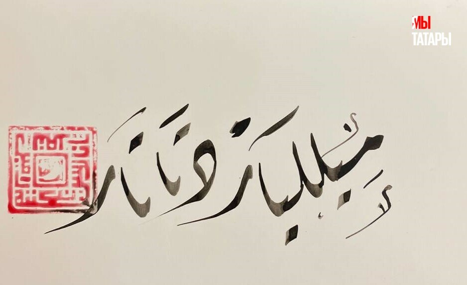 Надпись «Миллиард.татар» в исполнении каллиграфа Рамиля Насыбуллова