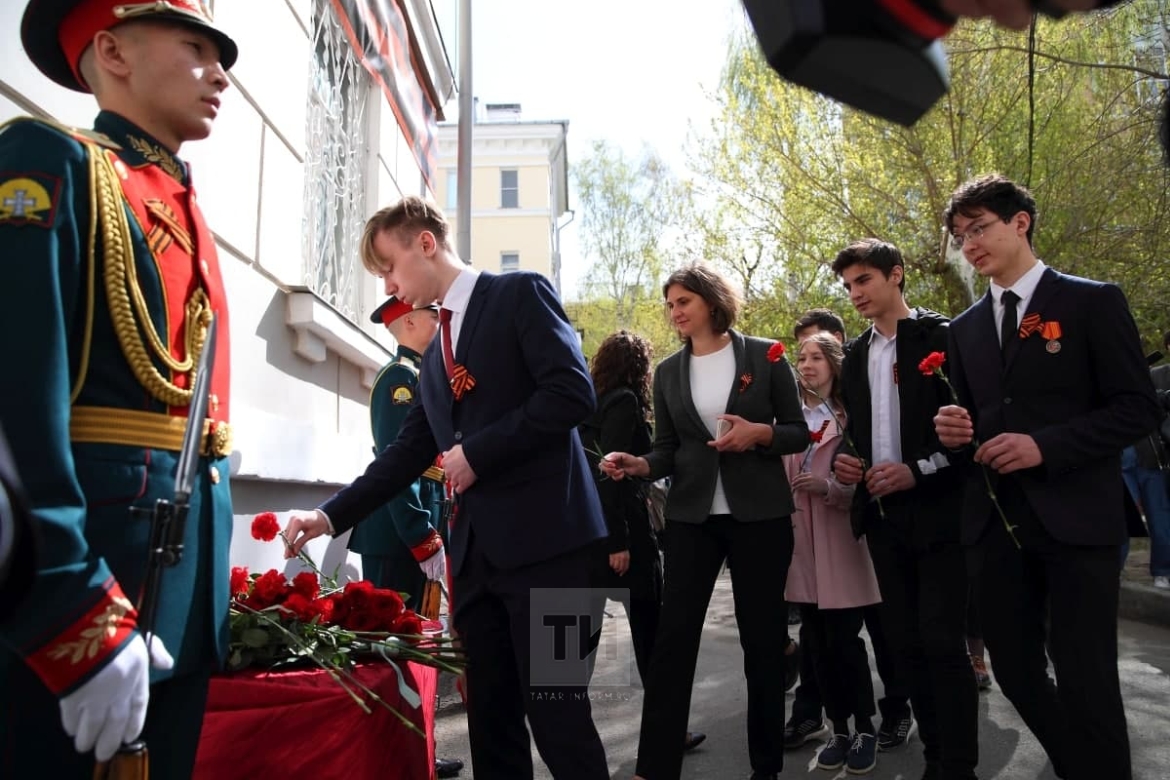 После торжественной церемонии почетные гости, юнармейцы и все желающие возложили цветы к мемориальной доске генерал-майору Федору Красавину. Памятная табличка находится на стене дома № 4 по улице Адамюка — именно здесь проживал участник Великой Отечественной в Казани.