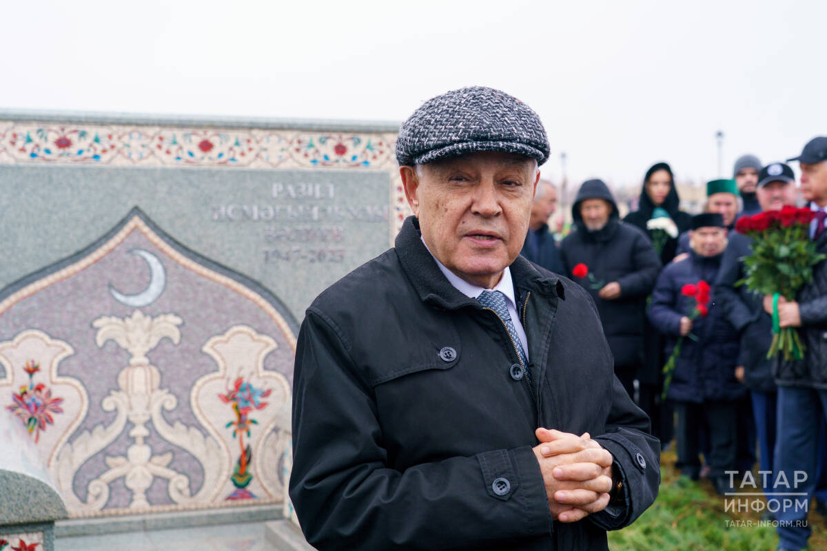 На казанском кладбище Курган состоялось открытие памятника на могиле народного поэта Татарстана, писателя и государственного деятеля Разиля Валеева. На церемонию приехали близкие и родные поэта, писатели, председатель Госсовета РТ Фарид Мухаметшин, депутаты Госсовета РТ, общественные и государственные деятели республики.