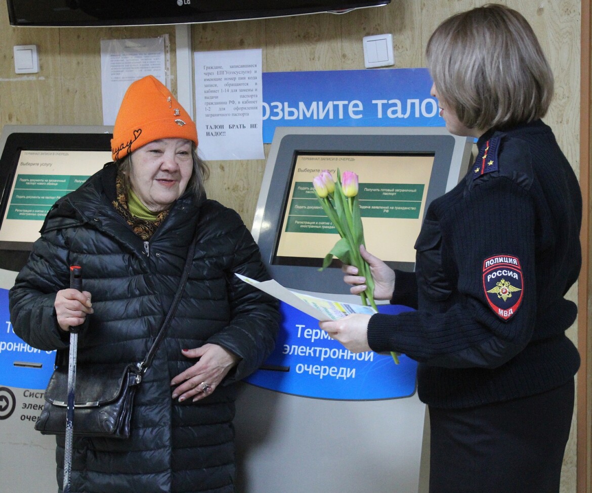 В Казани полицейские поздравили посетительниц отдела миграции с 8 Марта