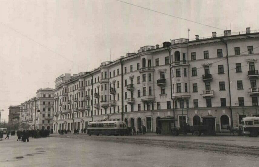 Стоящее на углу улиц Пушкина и Островского пятиэтажное, г-образное в плане здание выдержано в стиле так называемого сталинского ампира. Его возвели в 1949–1954 годах по проекту известных архитекторов Павла Саначина и Георгия Солдатова. Прежде на этом месте находились одно- и двухэтажные дома с магазинами и парикмахерской, отмечается в тексте государственной историко-культурной экспертизы.