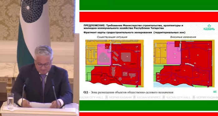 Во время обсуждения изменений для городской застройки спикер доложил о требовании Минстроя Татарстана изменить границы градостроительной зоны под возведение этого объекта.