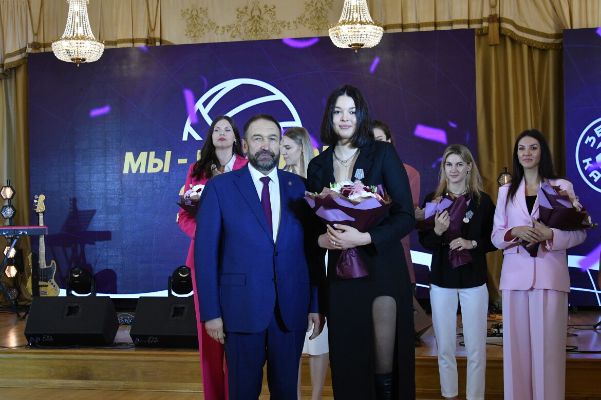 Сегодня в Казанском Кремле прошла церемония чествования волейбольных чемпионов России – женского «Динамо-Ак Барса» и мужского «Зенита-Казань». Свое золото они выиграли в течение одних суток, а сегодня вместе сидели за праздничным столом.