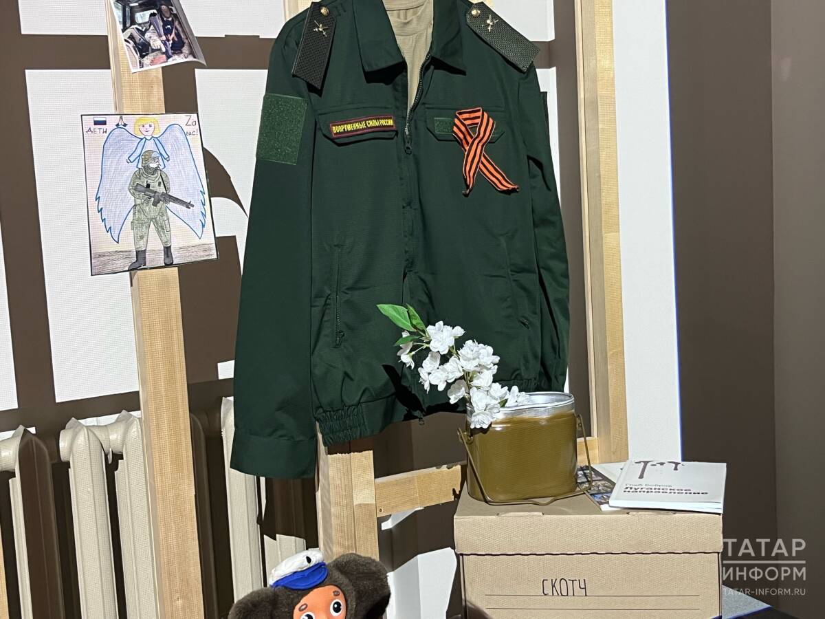 В качестве экспонатов были представлены старинные письма, телефон, китель и лампа 1940-х годов. В другом конце зала – современный военный штабной костюм, рисунки детей и игрушки. Так организаторы выставки хотели показать то, как герои СВО продолжают дело своих предков.