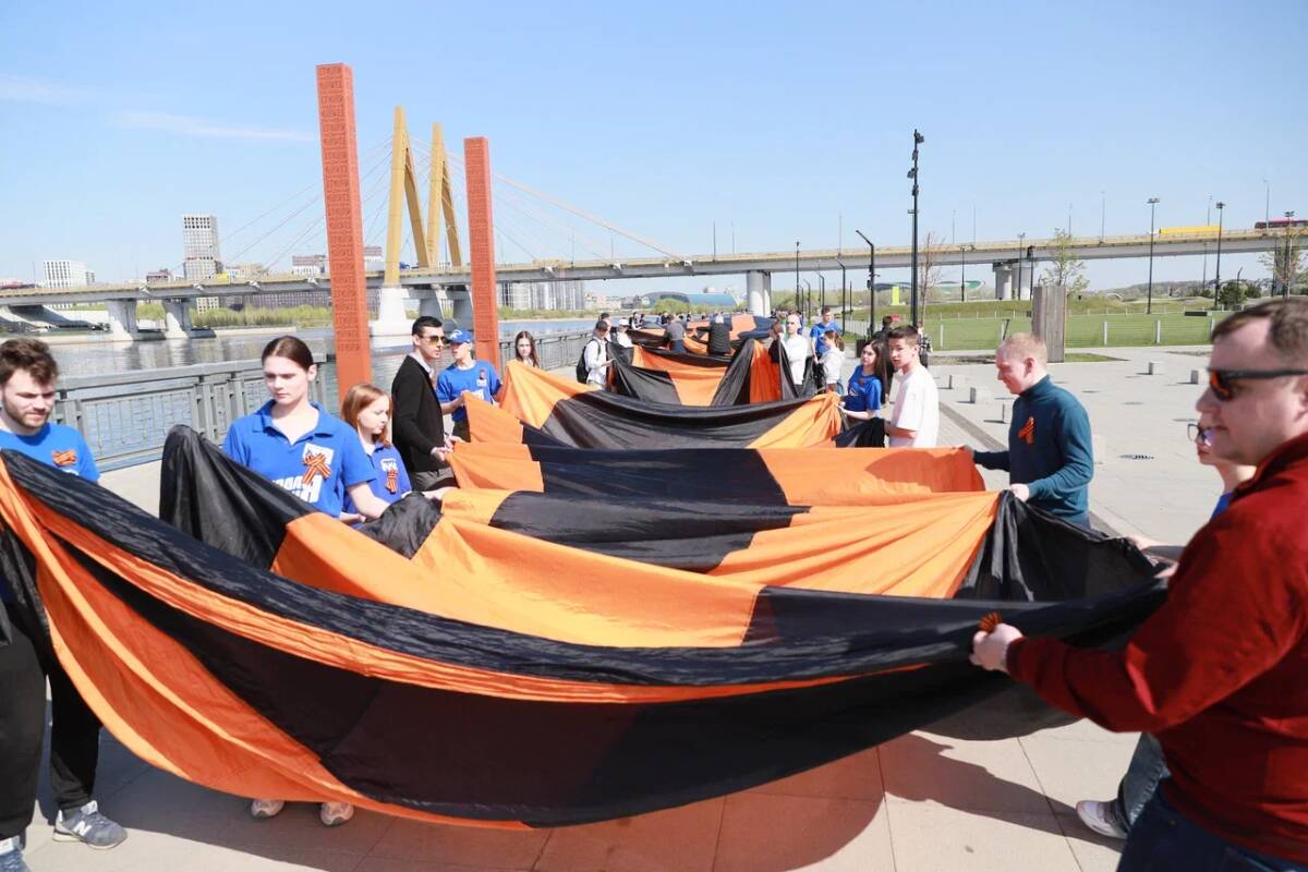 На набережной реки Казанки у экстрим-парка «Урам» прошла патриотическая акция «Георгиевская лента». В мероприятии, организованном Татарстанским отделением «Молодой Гвардии Единой России» при поддержке городских и региональных структур, приняли участие более тысячи человек. Кульминацией стало развертывание самой длинной Георгиевской ленты в стране – ее длина составила 300 метров. Об этом сообщает пресс-служба «Молодой Гвардии Единой России».