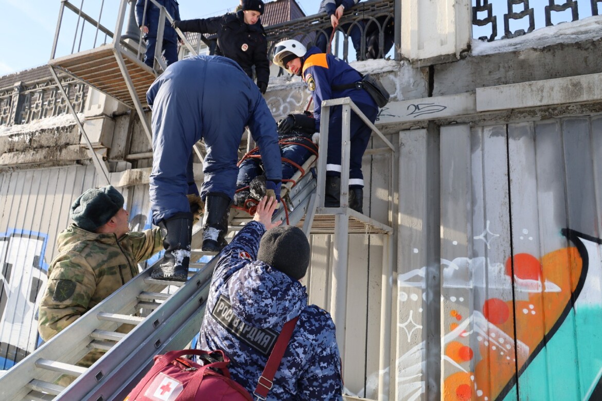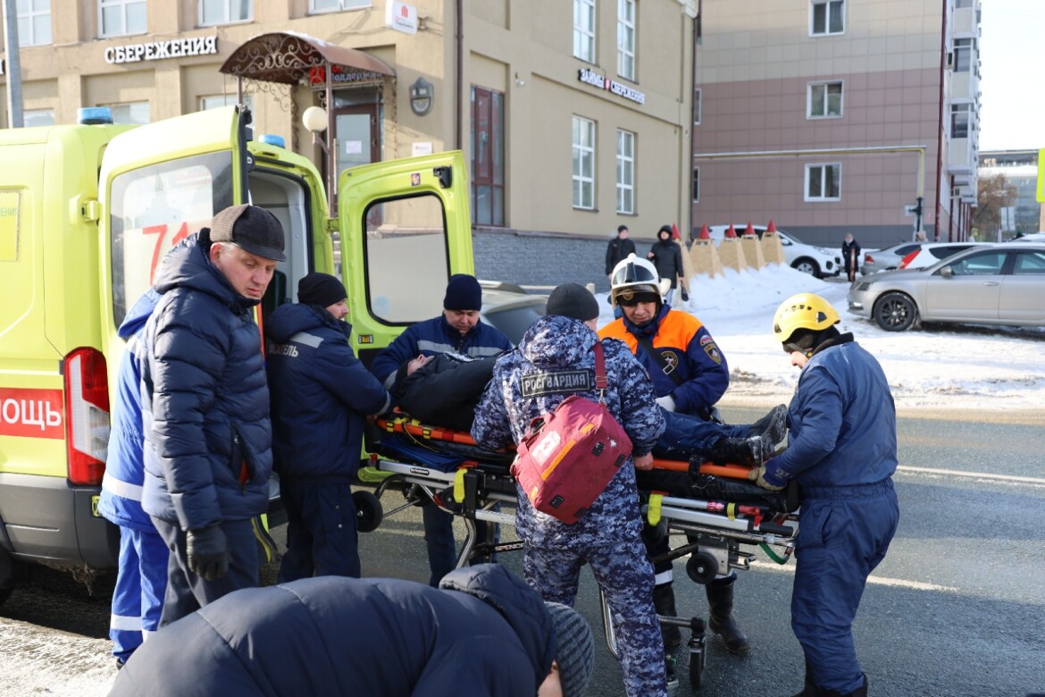 Вскоре к месту происшествия прибыли спасатели МЧС и врачи. Росгвардейцы помогли переложить пострадавшего на носилки, после чего мужчину погрузили в карету скорой помощи.