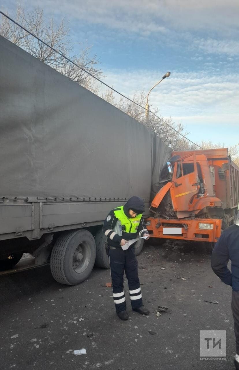 В Казани столкнулись два грузовика и легковушка, один из водителей пострадал
