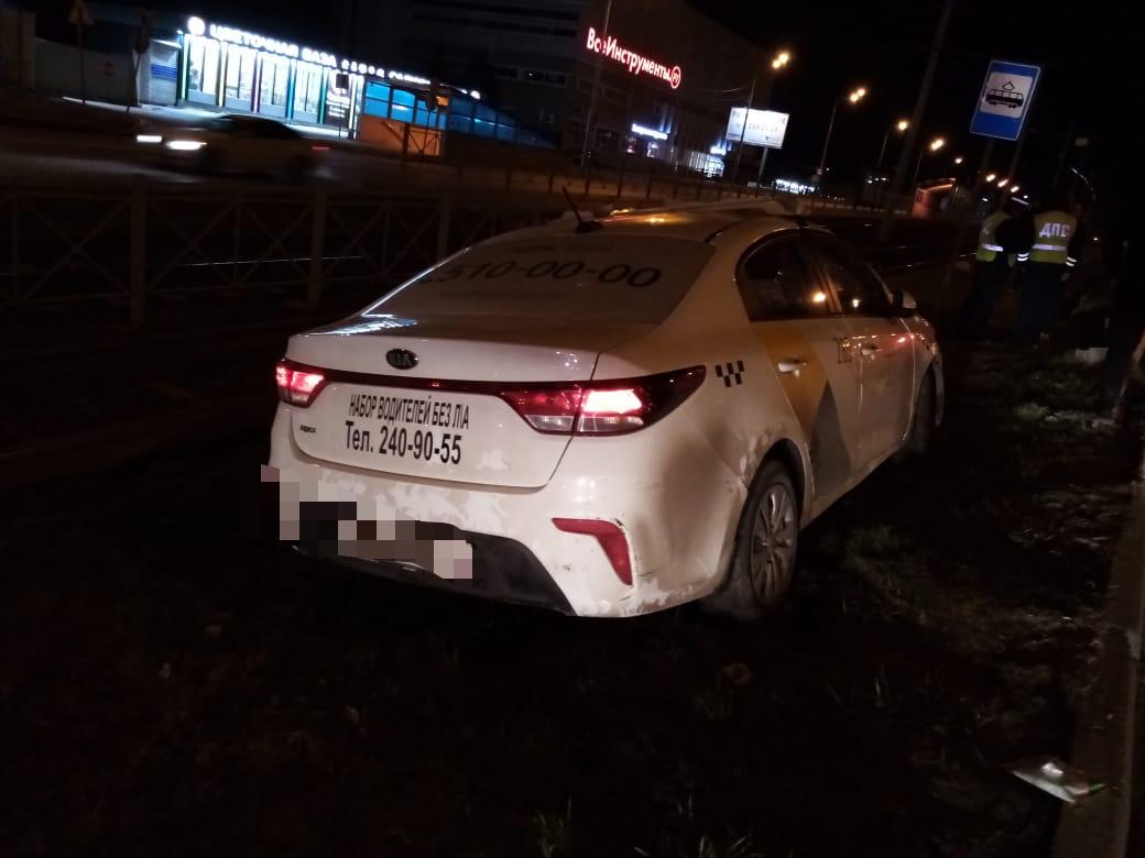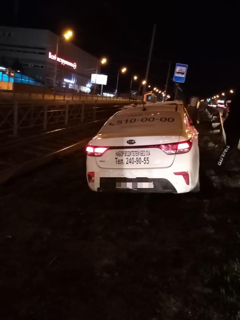 В Казани такси вылетело с дороги и, пробив ограждение, опрокинулось на крышу