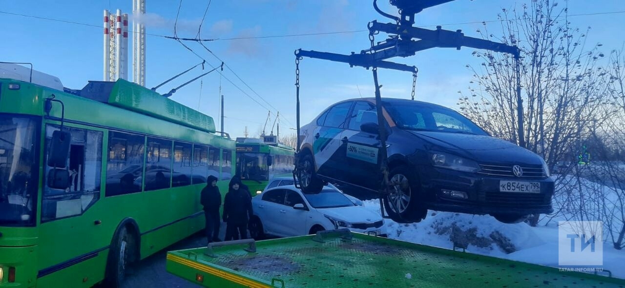 В Казани убрали припаркованный на дороге каршеринг и восстановили движение троллейбусов