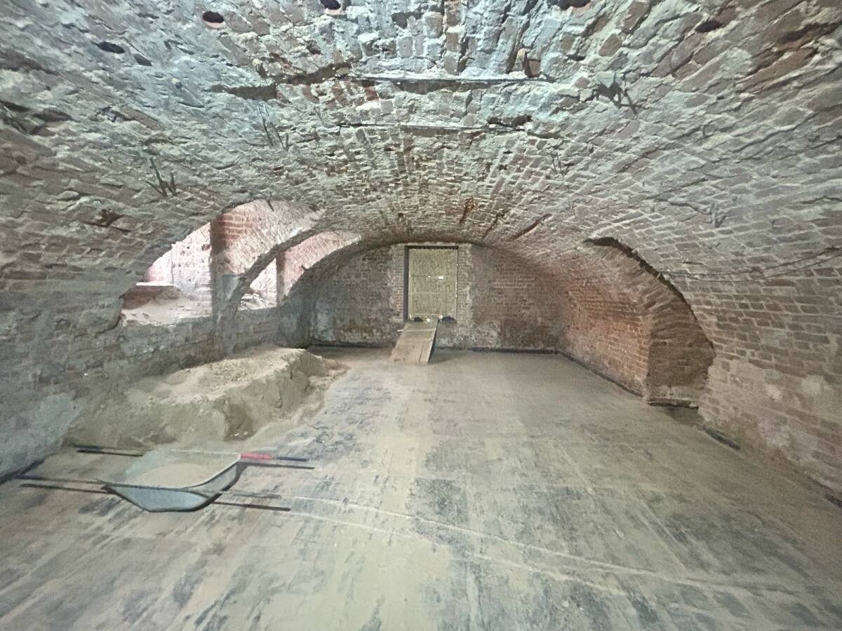 При этом часть работ уже выполнена. Теперь необходимо завершить усиление поврежденных участков кирпичных кладок, устройство гидроизоляционных слоев для защиты цокольной части строения и установку армирующих плит на своды помещений.