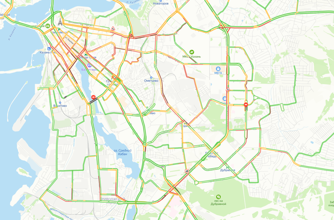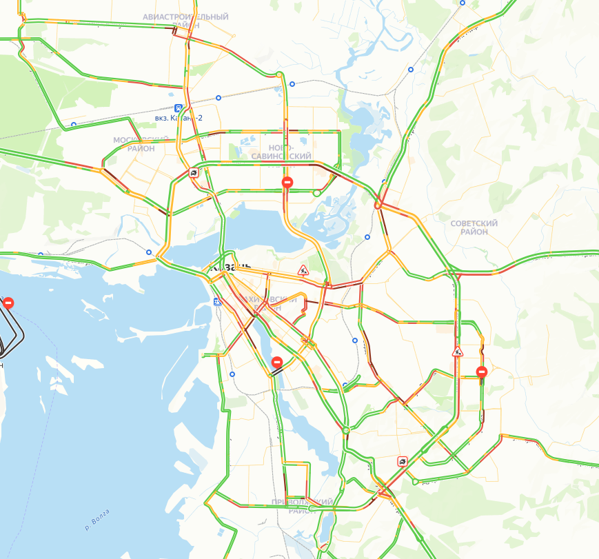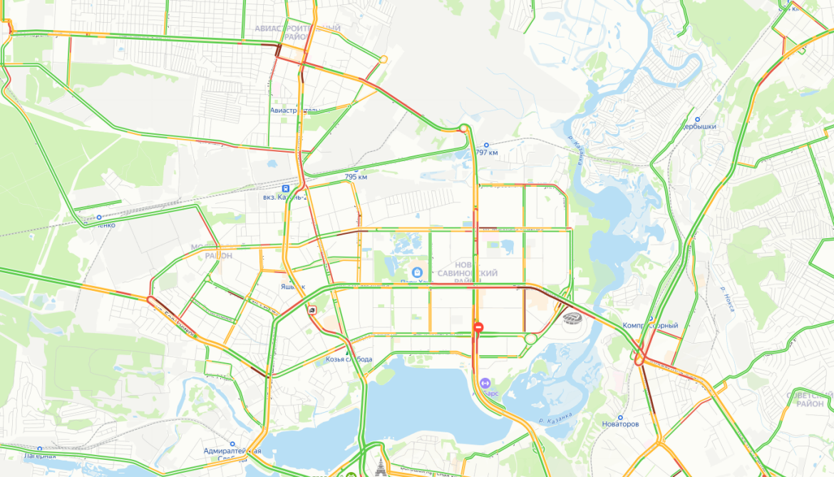 Сегодня вечером, в последний день рабочей недели, Казань встала в 10-балльных пробках. Самое затрудненное движение наблюдается в центре города, а также на улице Фрунзе, проспекте Ямашева в районе «Ак Барс Арены», на улицах Адоратского и Ершова.
