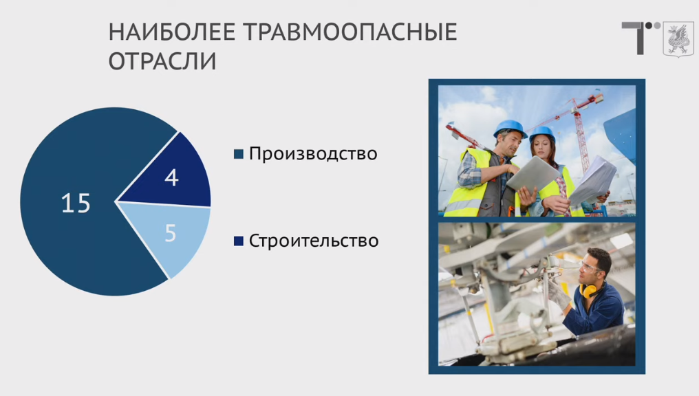 Наибольшее количество несчастных случаев произошло на производстве, в строительной отрасли и транспортной сфере.