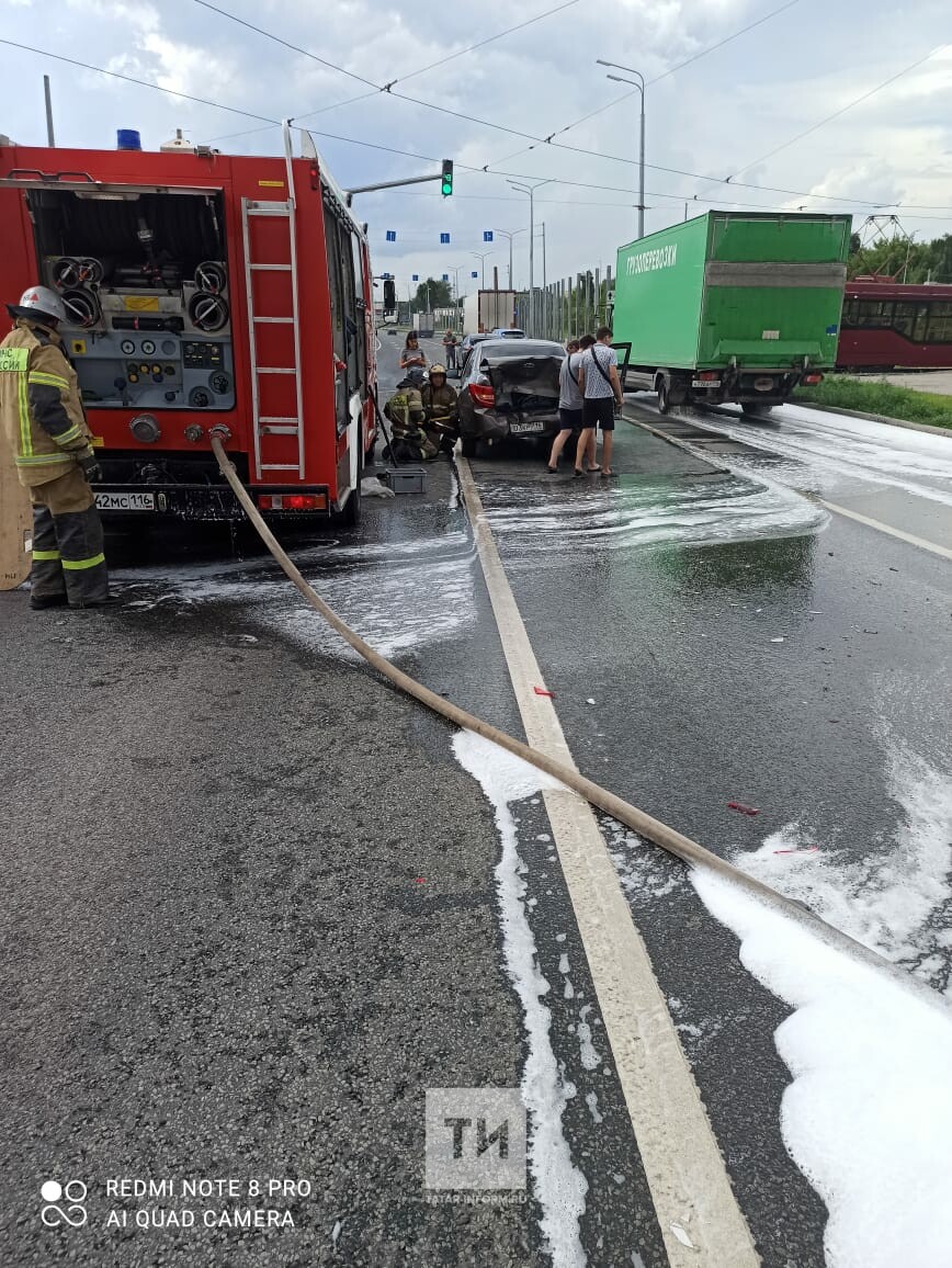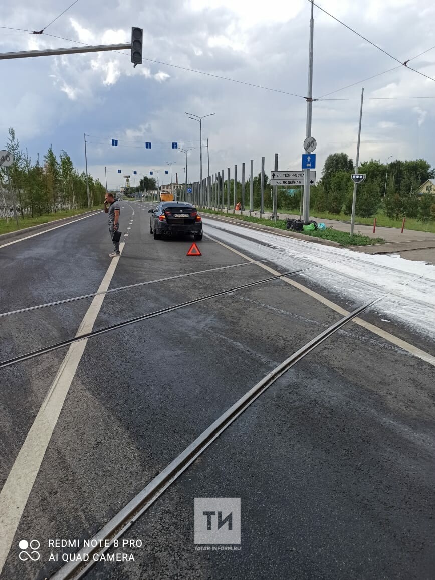 Авария, участниками которой стали три легковушки и стройтехника, произошла сегодня около полудня на магистрали «100-летия ТАССР» в Казани.