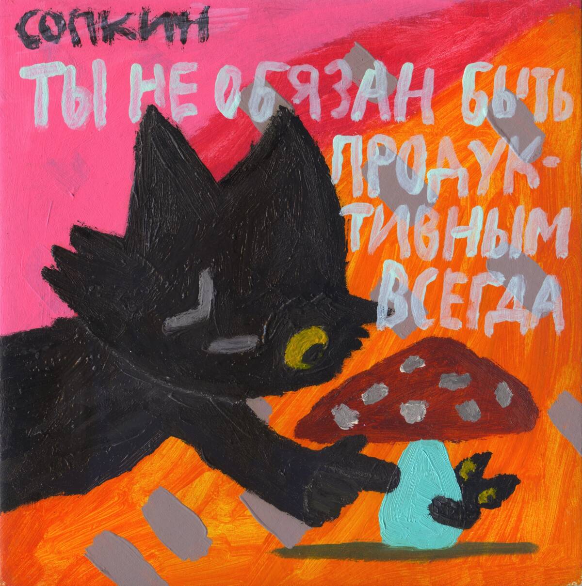 Название выставки «Маяк» отсылает к поиску собственного пути каждым из персонажей работ художника и каждым из зрителей, кто увидит его работы. Придуманные мастером герои часто куда-то добираются, преодолевают препятствия благодаря маяку внутри самих себя. Кого-то из них казанцы прежде могли видеть в пространстве улиц, ведь впервые они появились на стикерах в городах, где бывал художник. Позже Сопкин стал сопровождать свои работы фразами.