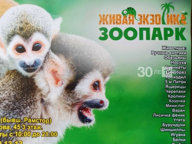 (Казань, 25 апреля, «Татар-информ»). Казанский мини-зоопарк «Живая экзотика», работавший ранее в торговом центре «Сити-центр», занялся распродажей экзотических животных. Соответствующие объявления размещены на сайте «Авито».