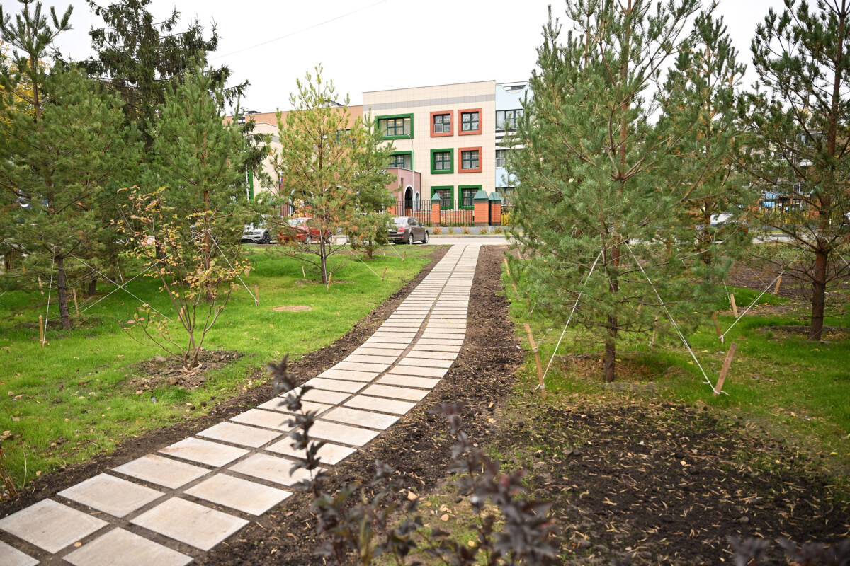 Отдельное внимание уделили озеленению. Газон с автополивом, более 1,2 тыс. кустов, 5 тыс. многолетних растений и почти 150 деревьев – все это посадили в благоустроенном сквере.