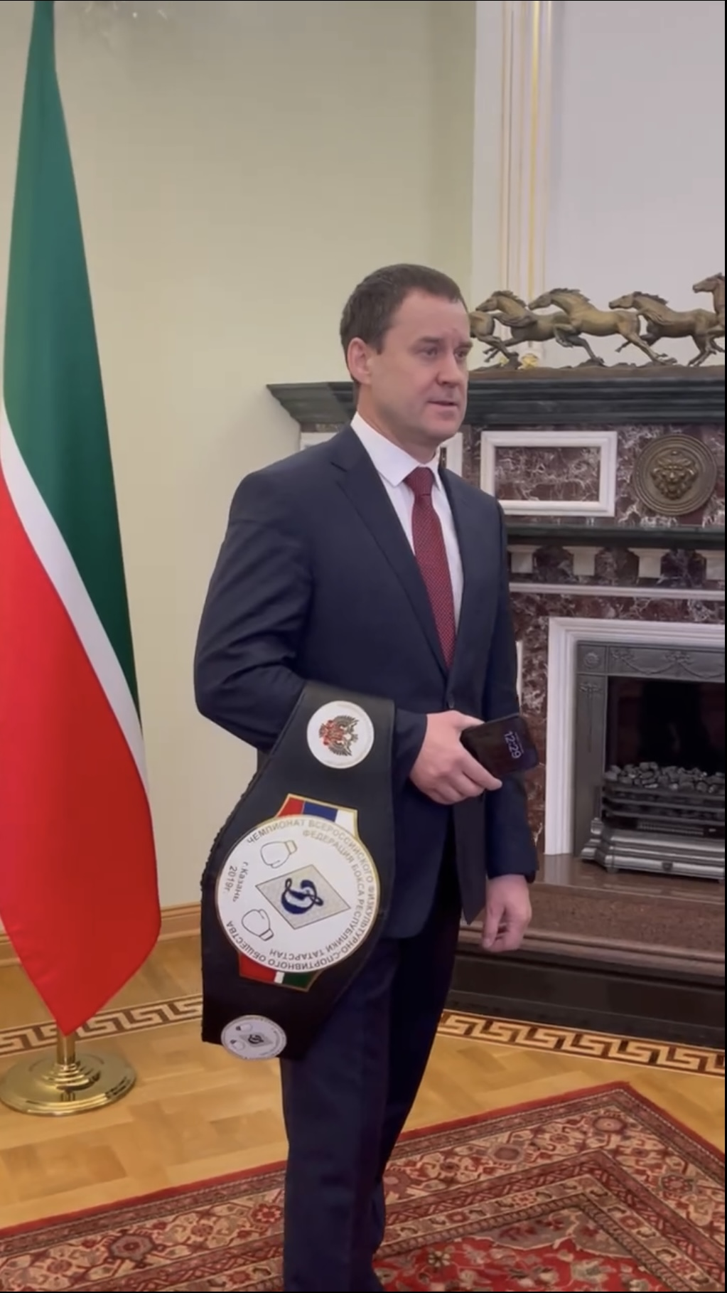Также в рамках церемонии Асгату Сафарову вручили памятный подарок от Федерации бокса России и почетный чемпионский пояс от Федерации бокса РТ в знак уважения и благодарности за многолетнее плодотворное сотрудничество.
