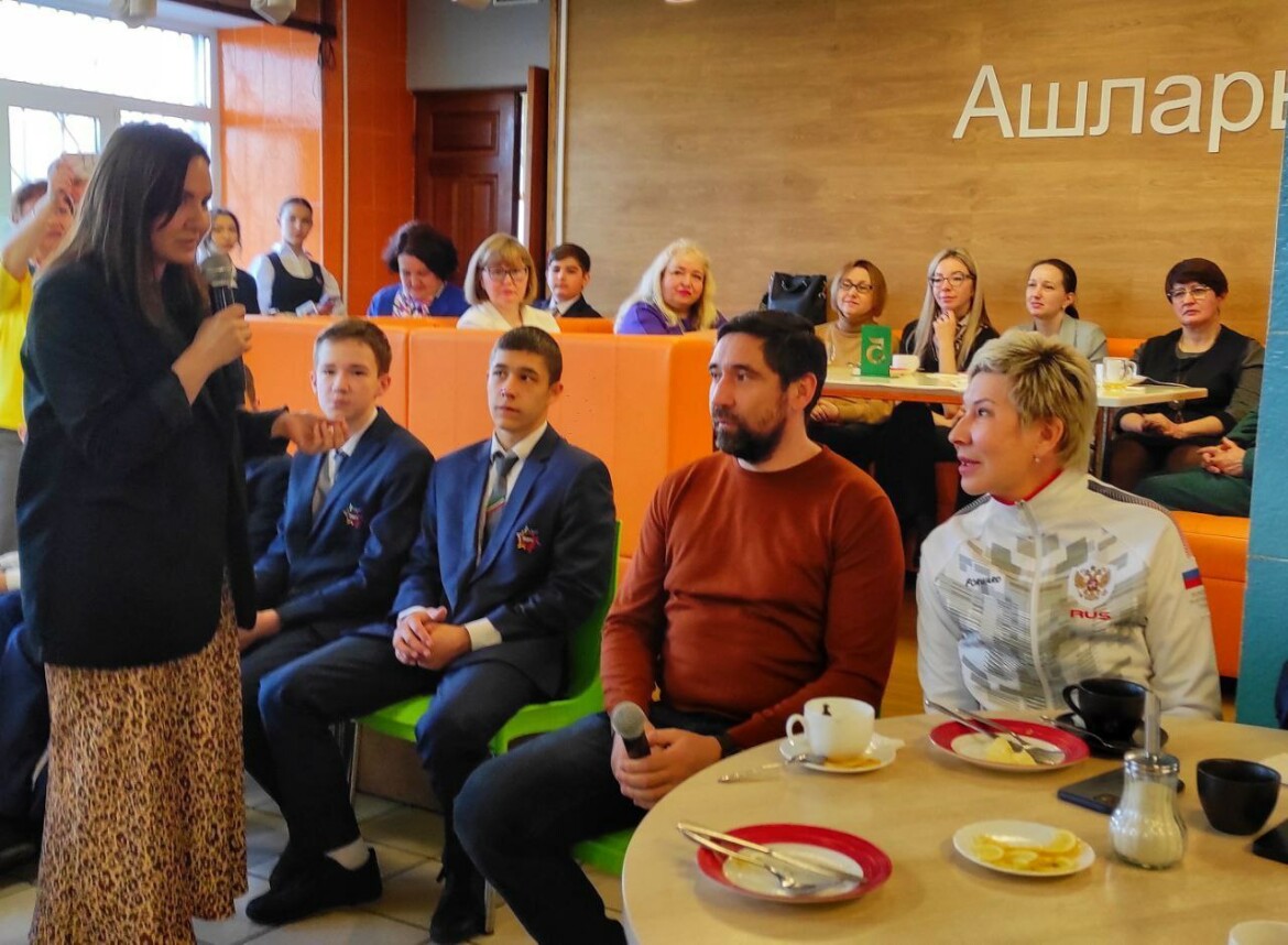 Вопросов к гостям было много. Как удавалось преодолевать трудности, неизбежные при совмещении занятий спортом и учёбы, как вовремя сориентироваться в правильности выбранного пути, научиться «не потеряться» в жизни, закончив спортивную карьеру. Также были затронуты темы строительства новых ледовых арен в Казани, перспектив развития спортивных классов различной профилизации, в том числе и на базе лицея «Ресурс».