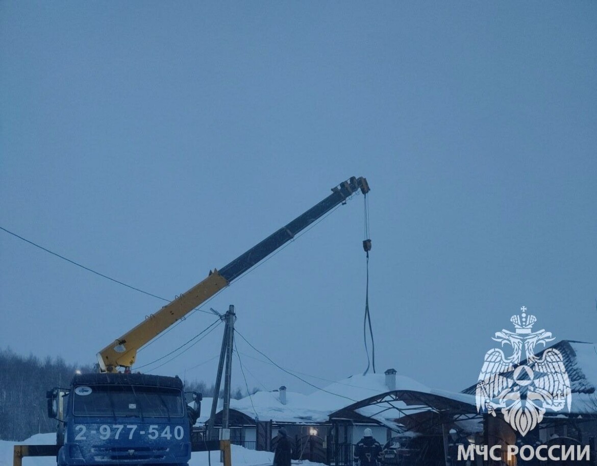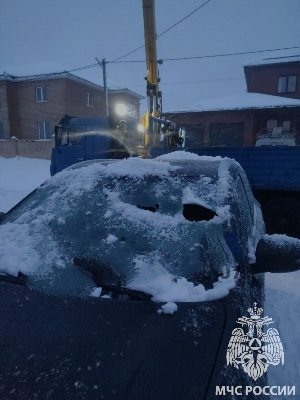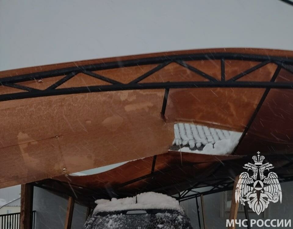 На месте спасатели установили, что частично рухнул навес, обломки повредили автомобиль. Площадь обрушения составила 10 кв. метров.