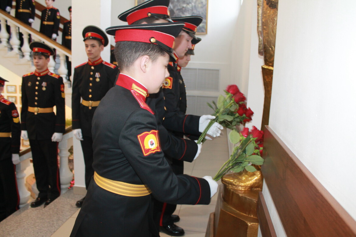 После возложения цветов состоялась информационная акция об истории возникновения Дня защитника Отечества. Ее проводили воспитатели в каждом подразделении. Далее курсанты посмотрели кинофильм «Офицеры» и навестили на дому ветерана Великой Отечественной войны Рубена Шайхназарова, прочитали ему стихи, вручили подарки.