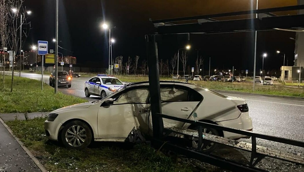 В казанском ЖК «Салават Купере» иномарка влетела в остановку, водитель в больнице