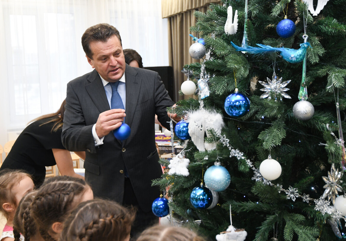 Новый детсад посетил мэр Казани Ильсур Метшин. Он подарил его воспитанникам на новоселье елку и игровые наборы. Глава города побывал в ясельной группе и заглянул в старшую группу, где дети вместе с воспитателями готовятся к школе.