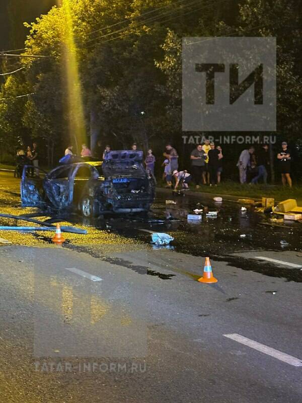 Возле дома №156 по Краснококшайской столкнулись «ГАЗель» и Mitsubishi Lancer. Как рассказали «Татар-информу» очевидцы, сразу после столкновения легковушка загорелась.