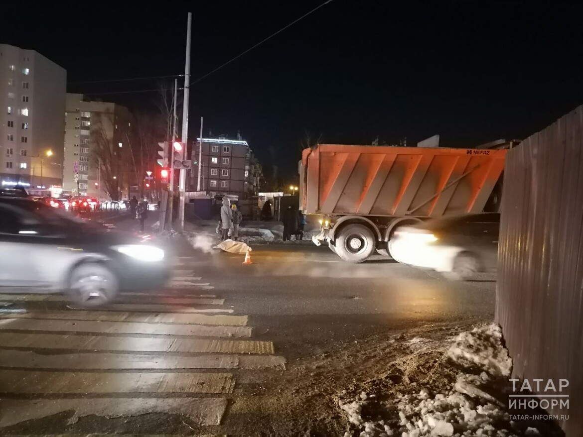 В Кировском районе Казани водитель «КамАЗа» сбил двоих пешеходов, женщина погибла