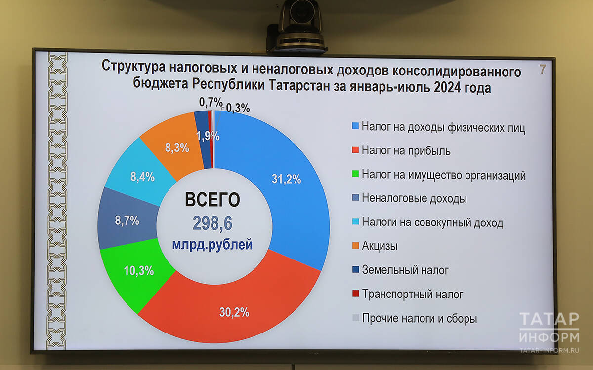 «По объему мобилизованных налоговых и неналоговых доходов консолидированного бюджета Республика Татарстан заняла шестую позицию среди субъектов Российской Федерации (после Москвы, Московской области, Санкт-Петербурга, Краснодарского края и Свердловской области) и лидирует в Приволжском Федеральном округе», - уточнила докладчица.
